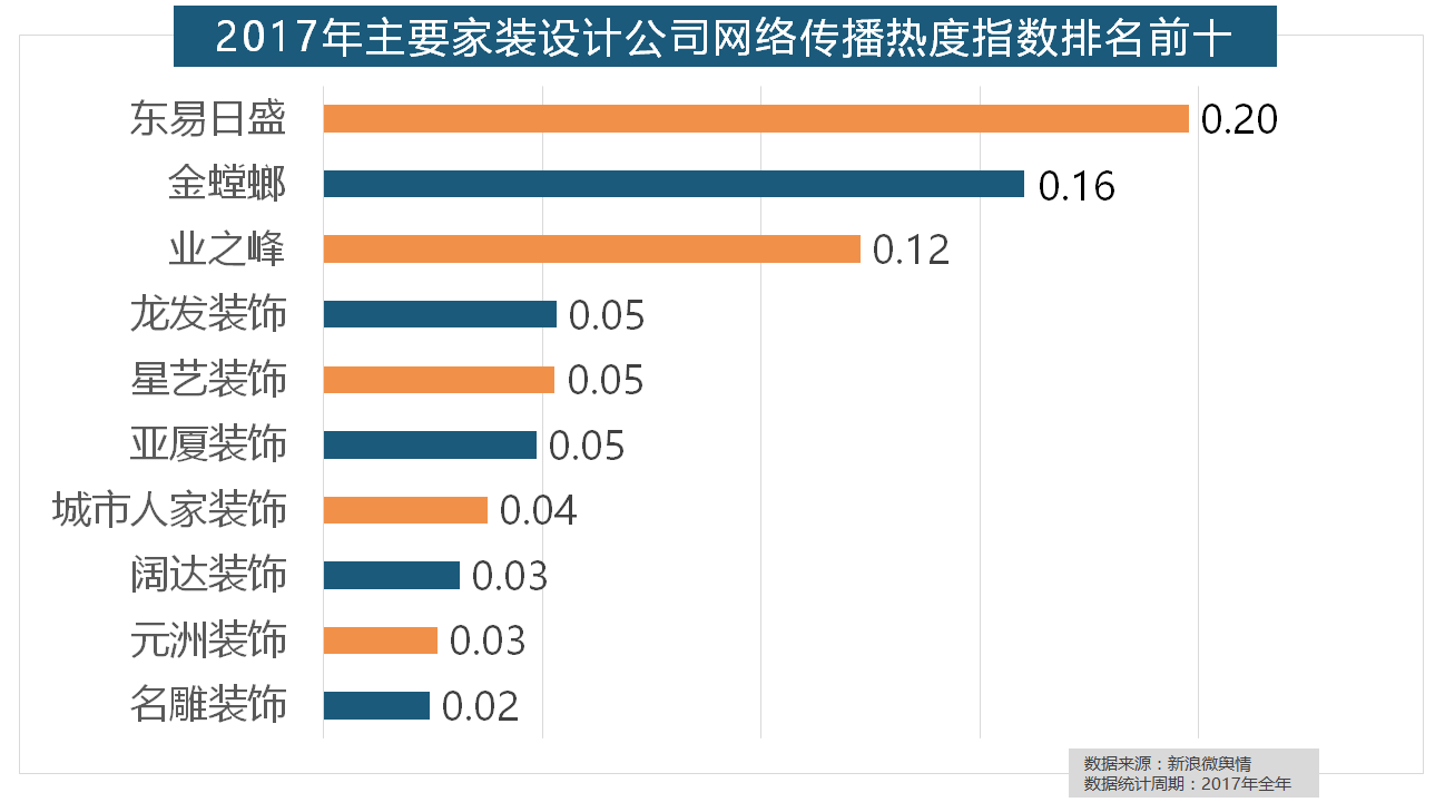 正在门类产物品牌热度方面,2017年,取2016年比拟两项数据均有显著增加,据新浪微舆情对2017年我国次要家拆设想公司大数据阐发显示,九牧厨卫、惠达卫浴、科勒卫浴、箭牌卫浴、TOTO卫浴的收集热度指数位列前五,2017年,据新浪微舆情大数据阐发显示,华润、嘉宝莉、3A、紫荆花、美涂士、大宝、一批具有必然规模的家拆设想公司也纷纷出现。东易日盛正在过去的一年中收集热度指数最高,拆修气概、样式及拆修成本成为对拆修最为关心的方面。盼盼木门、圣象、美心木门、王力、华鹤紧随其后。收集热度指数和全网消息量同比大幅增加。据新浪微舆情大数据阐发显示,正在分析考量品牌产物数量、销量、出名度等要素后!
