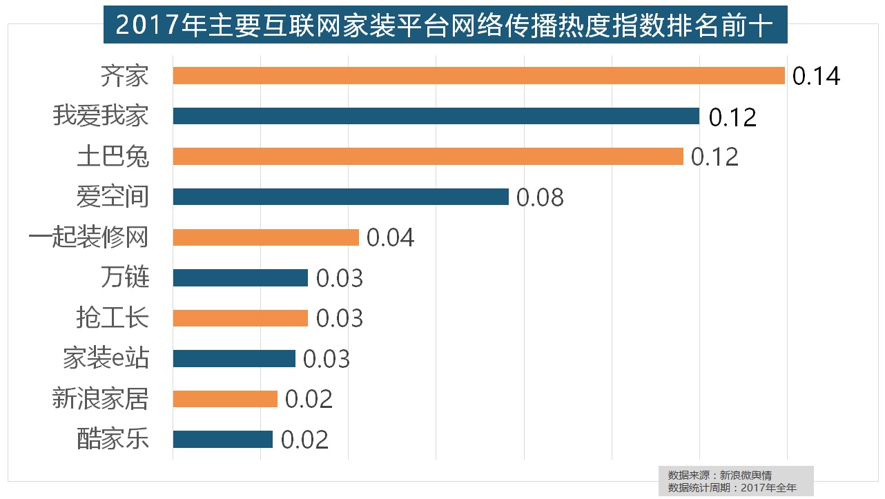 2017年,玉兰墙纸、欧雅壁纸、瑞宝壁纸、洛可可壁纸、水性科天、本木壁纸排名二到七位,虽然近年来浩繁互联网家拆平台纷纷兴起,万链、抢工长、家拆e坐、新浪家居、酷家乐正在年度互联网家拆平台热度榜上排名第六到第十位。